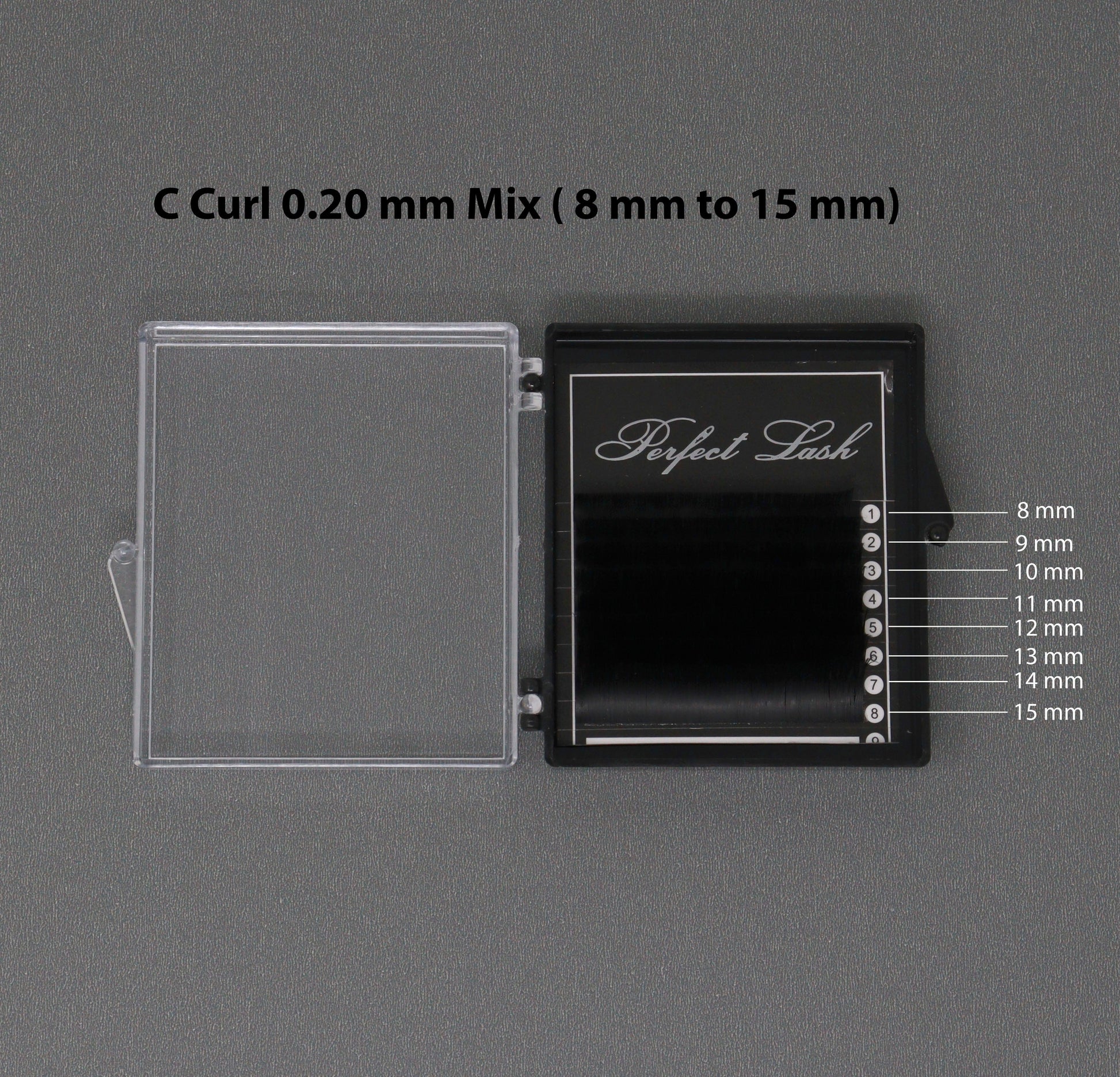 - 8 Rows of Mix Eyelash Extension Mix C Curl 0.20 mm x 8 mm, 0.20 mm x 9 mm, 0.20 mm x 10 mm, 0.20 mm x 11 mm, 0.20 mm x 12 mm, 0.20 mm x 13 mm, 0.20 mm x 14 mm, 0.20 mm x 15 mm