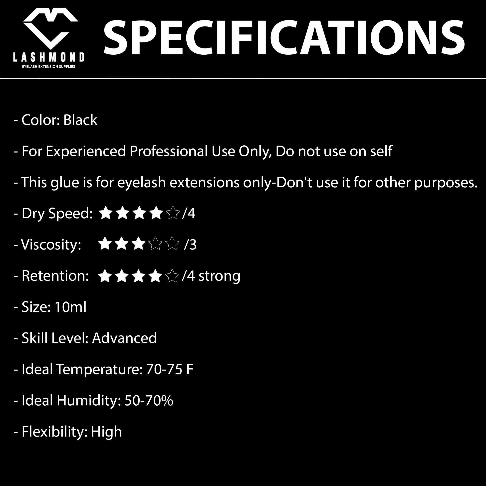 User precautions- DO NOT use on skin, eyes stay closed for the duration of appointment until the glue is totally dry